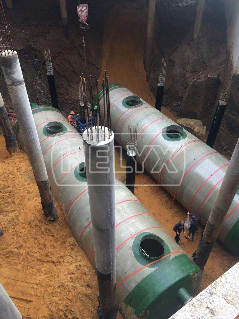 На объекте в UP-квартале Римский, Московская область, были установлены локальные очистные сооружения. Габариты сооружений составляют D=3600 мм и L=14200 мм.