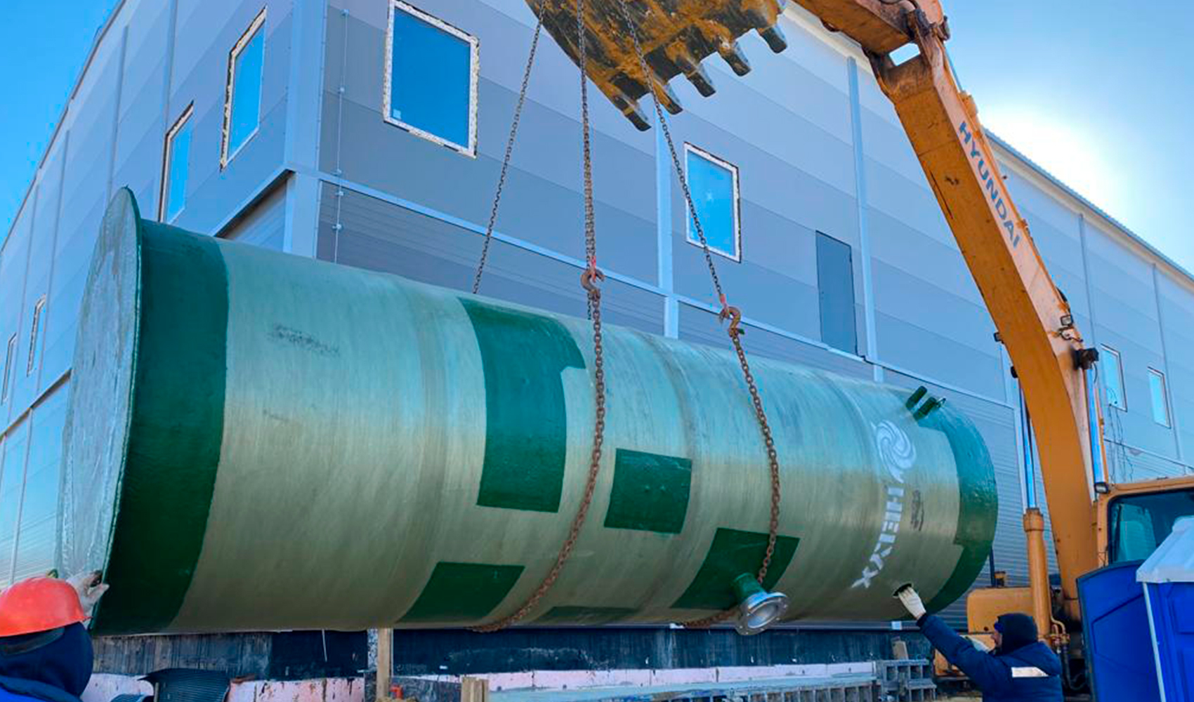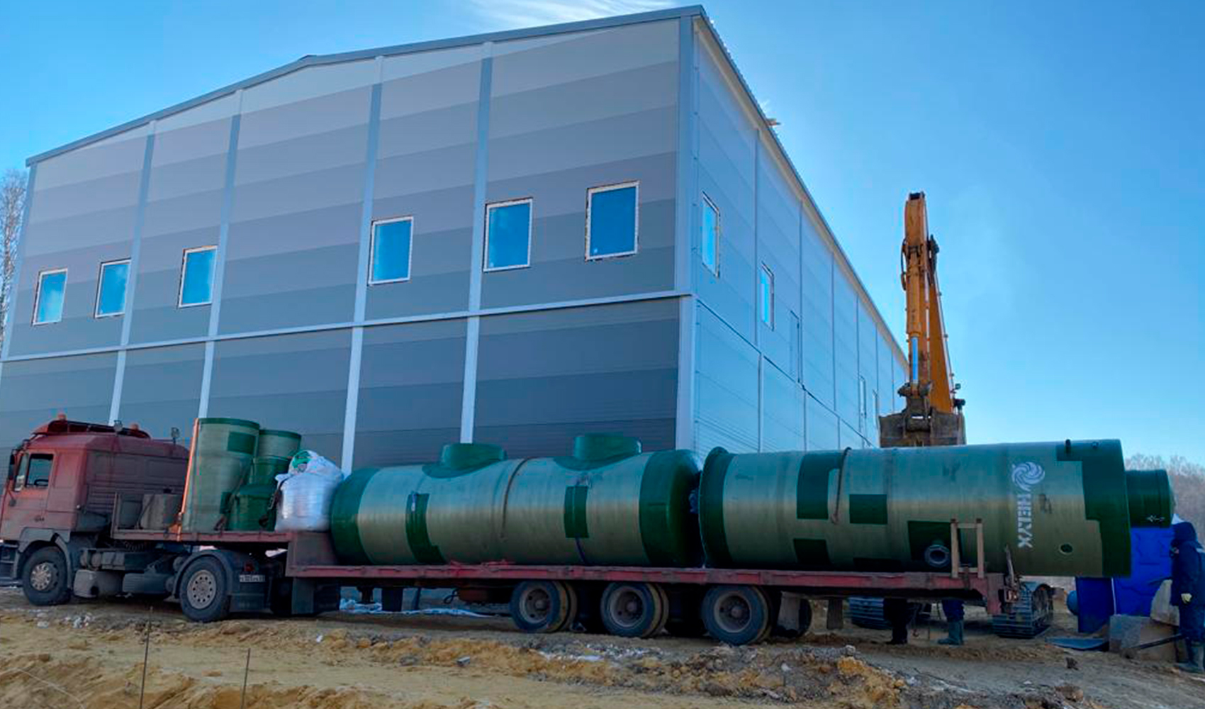 Произведена поставка и установка двух емкостей объемом 60 м3 каждая, диаметром 3200 мм и длиной 7900 мм. Емкости оснащены техническим колодцем. Также было установлено ливневое очистное сооружение (ЛОС) в едином корпусе производительностью 6 л/с, диаметром 1600 мм и высотой 5800 мм. Для обеззараживания сточных вод установлена установка УФ обеззараживания диаметром 1500 мм и высотой 5000 мм.